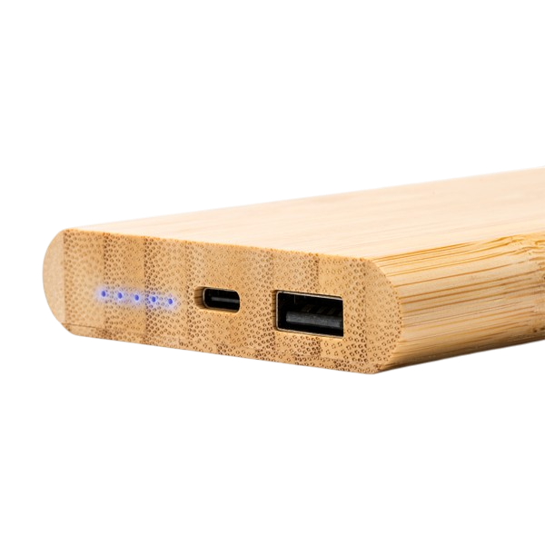 - Power bank με κύρια δομή από μπαμπού και ίνες σίτου.