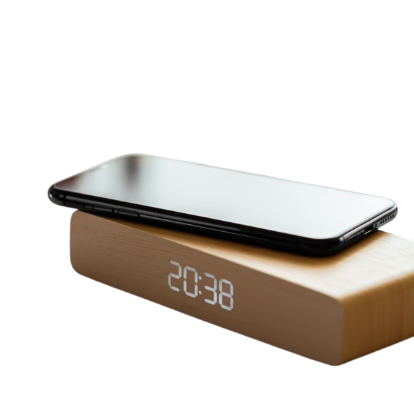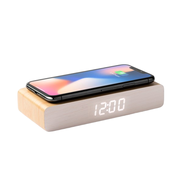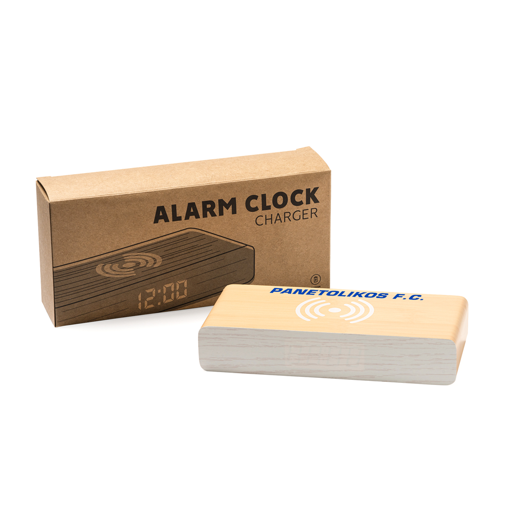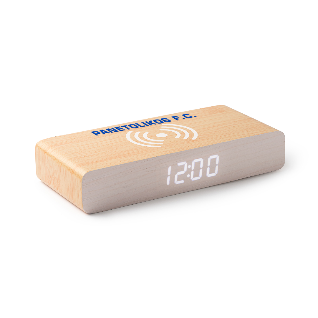 - Ρολόι με ασύρματο φορτιστή 5W από ξύλο MDF, με 3 λειτουργίες φωτισμού.